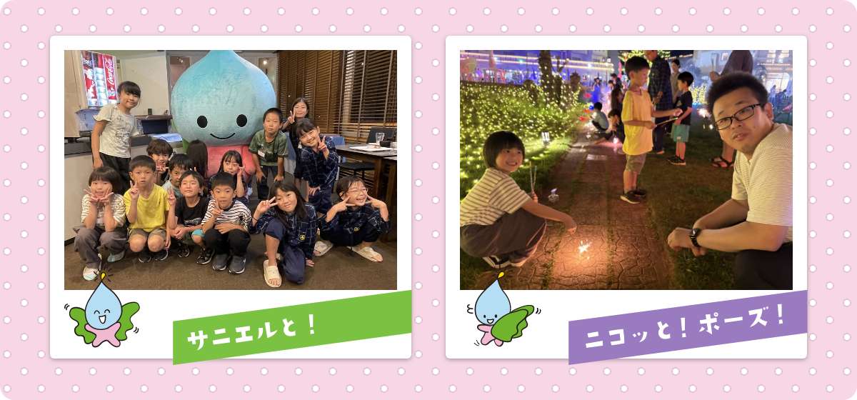 窓からは波のきらめきが見渡せ、旅の疲れを癒すにはぴったりのロケーション。夕食会では、特別ゲストの「サニエル」が登場し、会場は笑顔に包まれました。食後には、プチ花火大会を開催。海風を感じながら、翌日に向けて心も体もリフレッシュできました。
