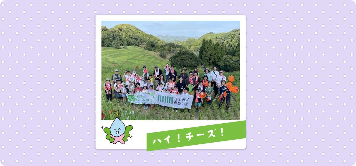 今回の千葉開催は、房総半島の南側に位置する守谷海岸や沖ノ島、大山千枚田が舞台でした。チーバくんのお尻からつま先あたりに位置するこれらのフィールドには、出発地点の千葉駅周辺とは異なる景色が広がり、千葉は広い!と魅力を再発見。海・島・棚田それぞれの自然環境で、自然のしくみや人と自然の営みを学ぶネイチャ-ツアーとなりました。朝のラジオ体操や花火など、参加者同士の交流も深まり、今後も五感では足りない(⁉)ほど、自然の恵みや交流を感じられる思い出深いイベントを目指して参ります。